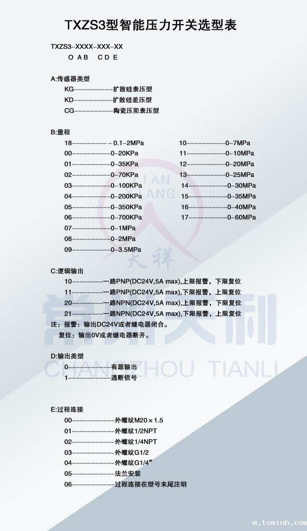今天继续介绍TXZS型智能压力开关中第三种产品,以及他的概述,参数,选型。