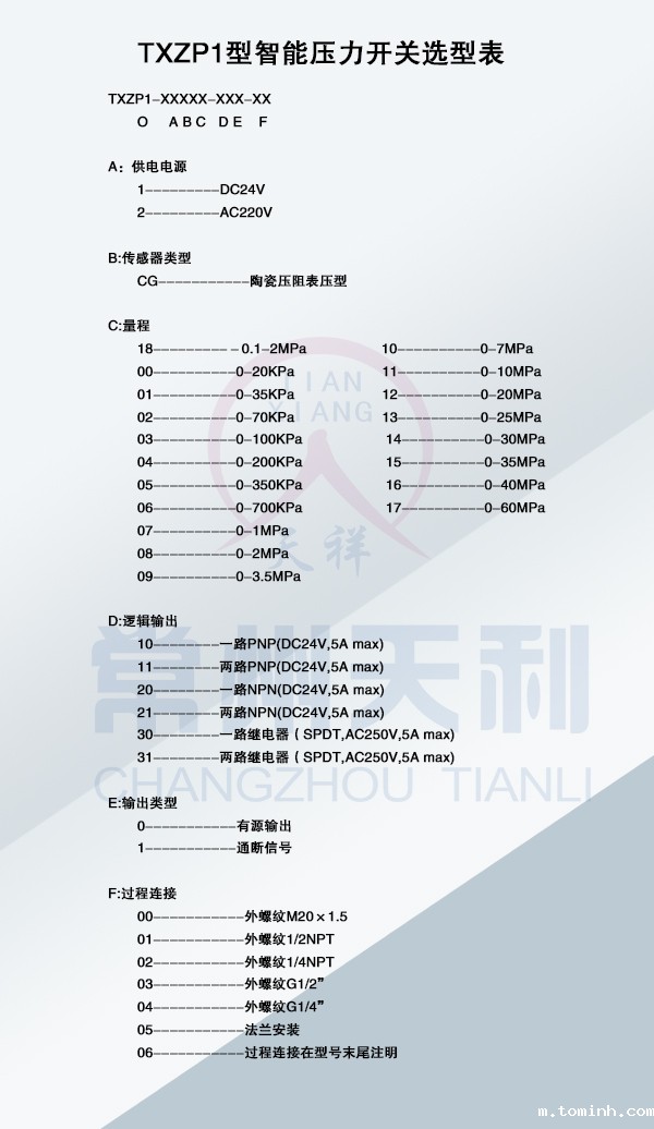 TXZP1智能压力开关基本参数